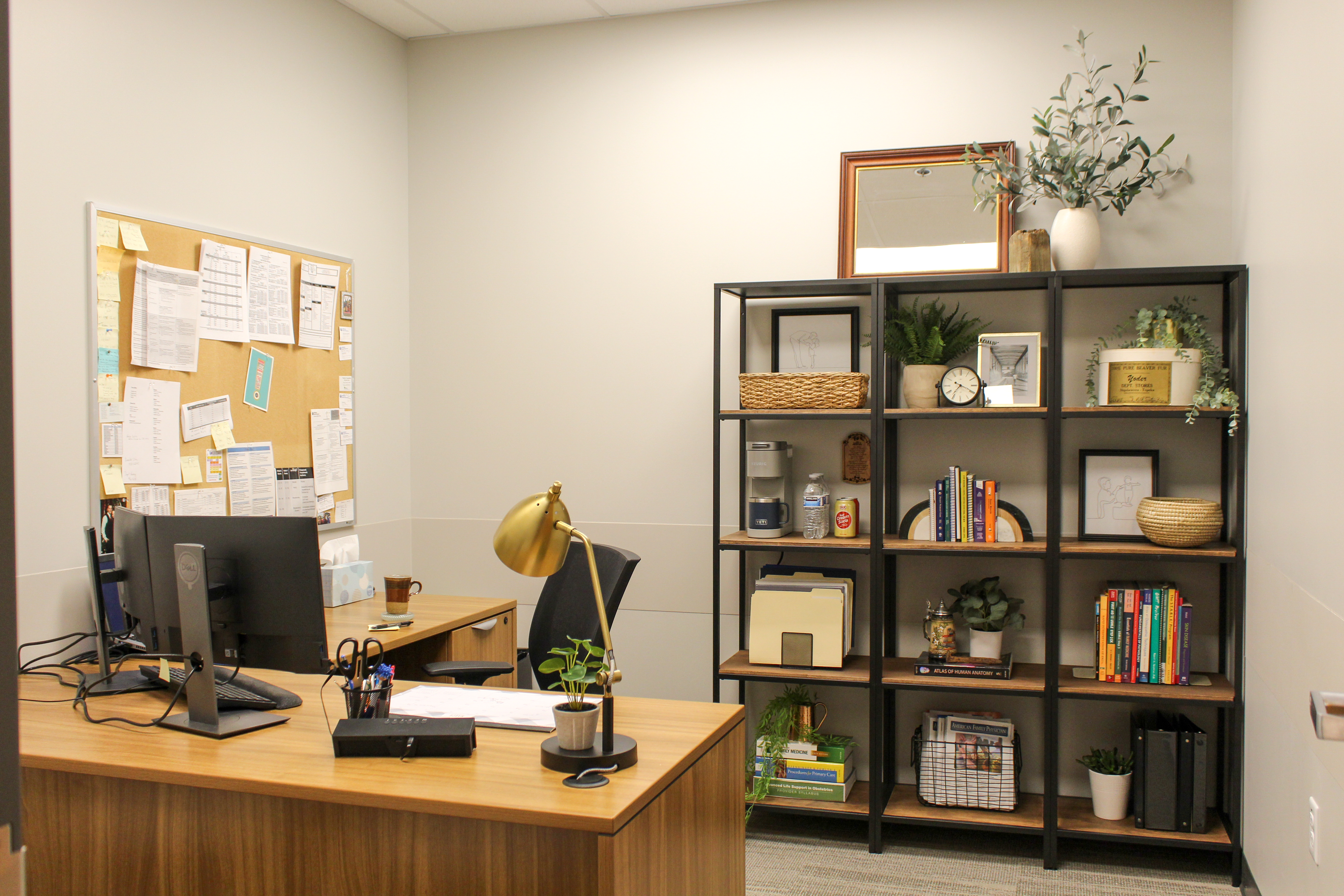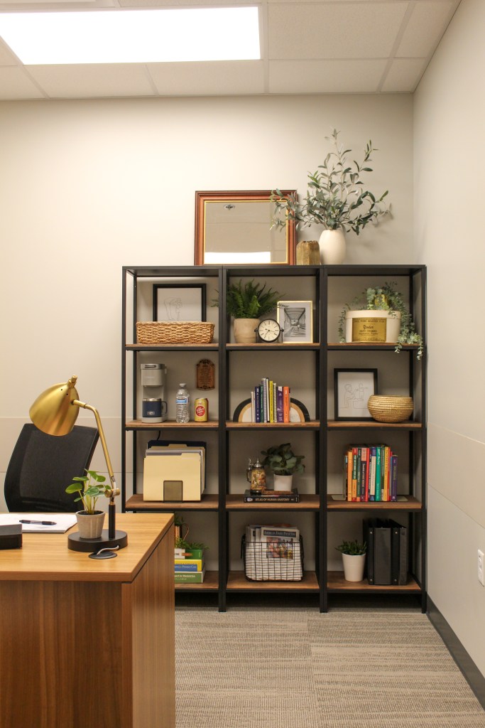 Justin works in the healthcare field and moved into a new office building in January 2021. Since moving in, he had done virtually nothing in terms of decorating his office space and asked me to help. Here’s what the room looked like prior to my, shall we say, intervention: