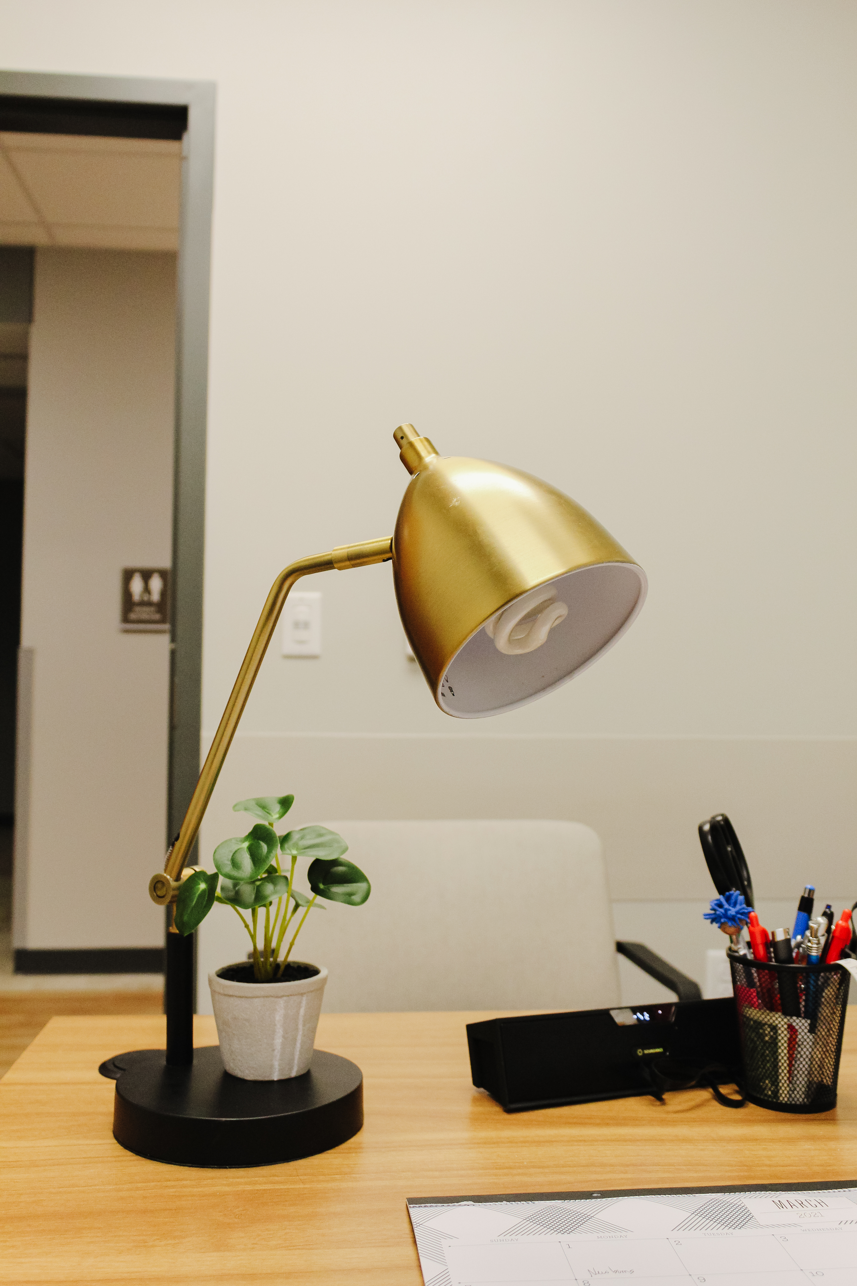 I added a lamp and small faux plant to his desk as well to create a cozier feel for his desk and give him an option if he needs a break from the fluorescent light.